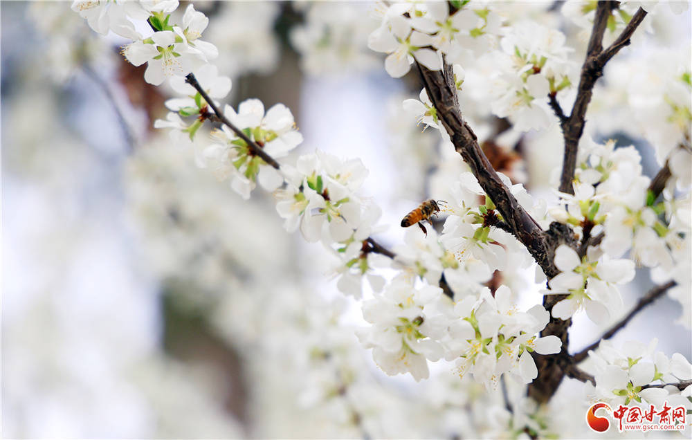 r一只蜜蜂停驻花间,振翅采蜜,在纯白的花海中增添了灵动生机。各类春花次第开放,白的素雅、粉的娇嫩、红的热烈,为市民献上一场春日视觉盛宴。