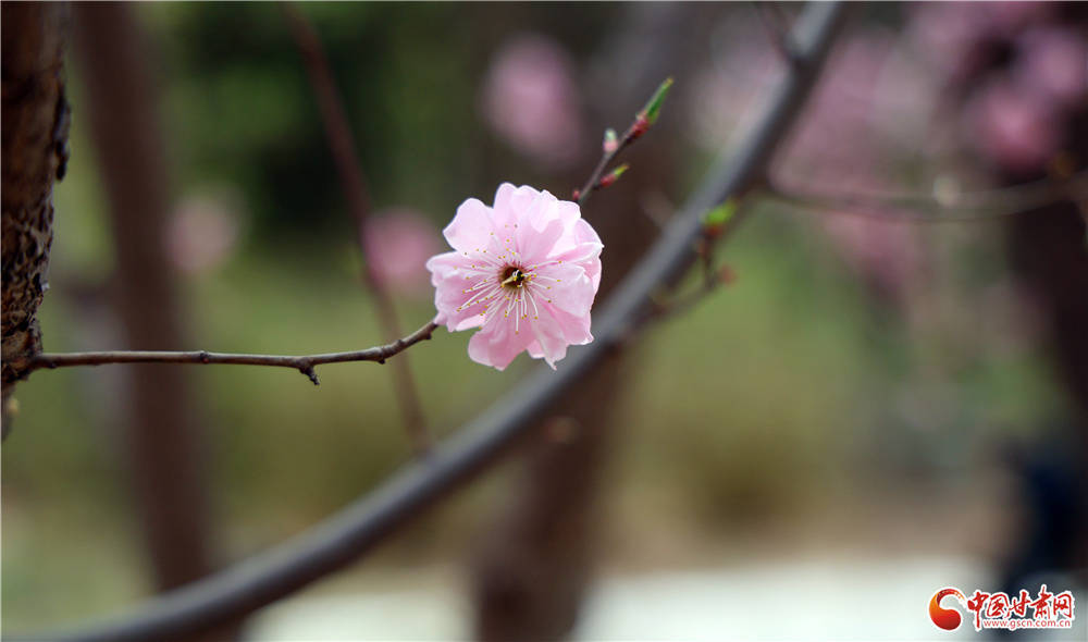 r一枝粉花悄然绽放,层层花瓣娇嫩柔美,花蕊间蜜蜂穿梭采蜜,尽显春日生机。浅粉的花朵在枝头摇曳,将春日的温柔与灵动定格,成为市民镜头里最美的春日印记。